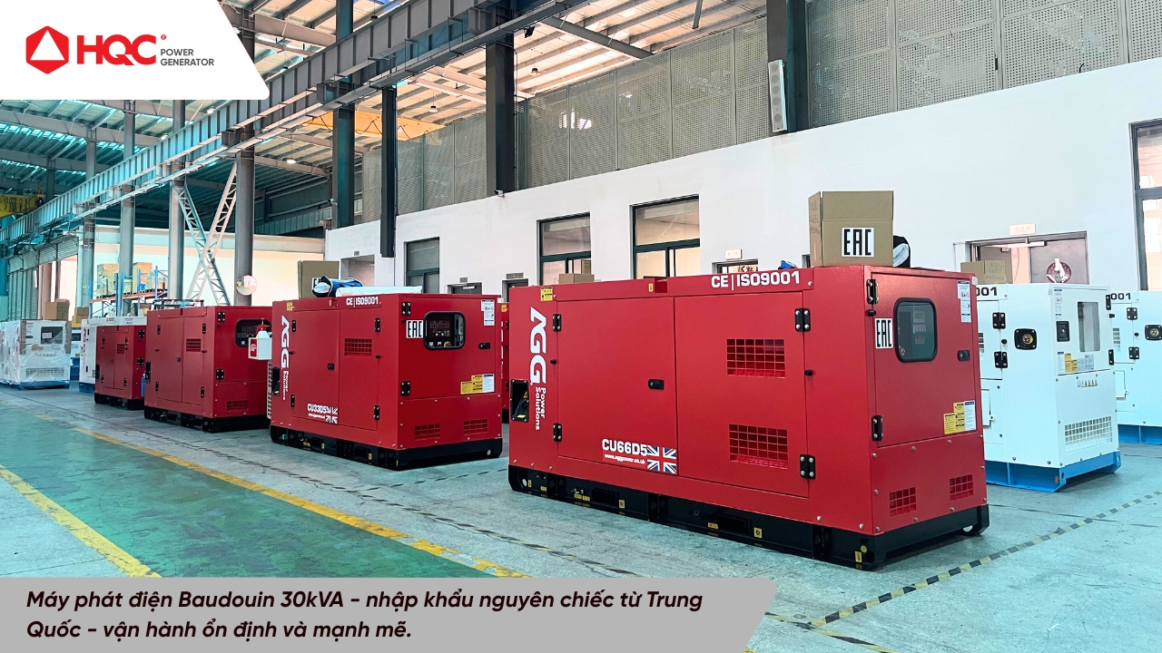 Tổ máy phát điện Baudouin 30kVA được HQC nhập khẩu nguyên chiếc từ Trung Quốc, và máy được lắp ráp bởi hãng AGG Power Solutions. Dưới đây là thư ủy quyền của AGG cho HQC và những tiêu chuẩn đáp ứng của tổ máy Baudouin 30kVA: